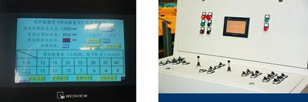 通过变频电机驱动丝杠机构来调整剪切口与定位挡板之间的距离,采用编码器测量,定尺精度高,可达±2mm,可剪切各种长度的钢筋。